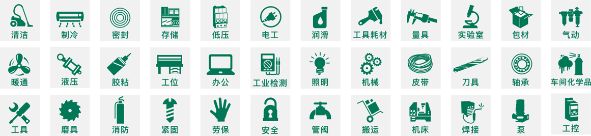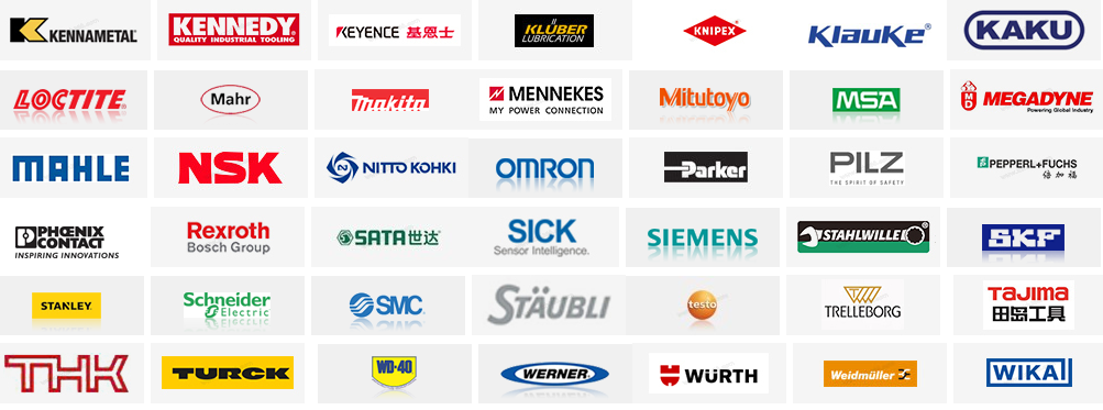 | 胶黏剂/防锈剂/润滑剂 | 3M、LOCTITE乐泰、ARALDITE爱牢达、TIPTOP蒂普拓普、PATTEX百得、HENKEL汉高、LORD洛德、 SAINT-GOBAIN圣戈班、DOWCORNING道康宁、KUNLUN昆仑、MOLYKOTE摩力克、QUICK快克、MOBIL美孚、 SHELL壳牌、 GREATWALL长城、CASTROL嘉实多、FUCHS福斯、SKF斯凯孚、KLUBER克鲁勃、TOTAL道达尔、 DUSSO杜索、BLASER巴索、KYODOYUSHI协同、NCH安治化工、QUAKER奎克、LEYBOLD莱宝、WD-40 |